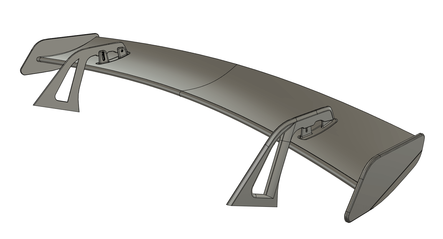 A digital replica of the rear wing used on the Porsche GT3 992, created using 3D CAD. The object is intended for use in CFD studies for performance analysis. Autodesk Fusion 3D software was used.