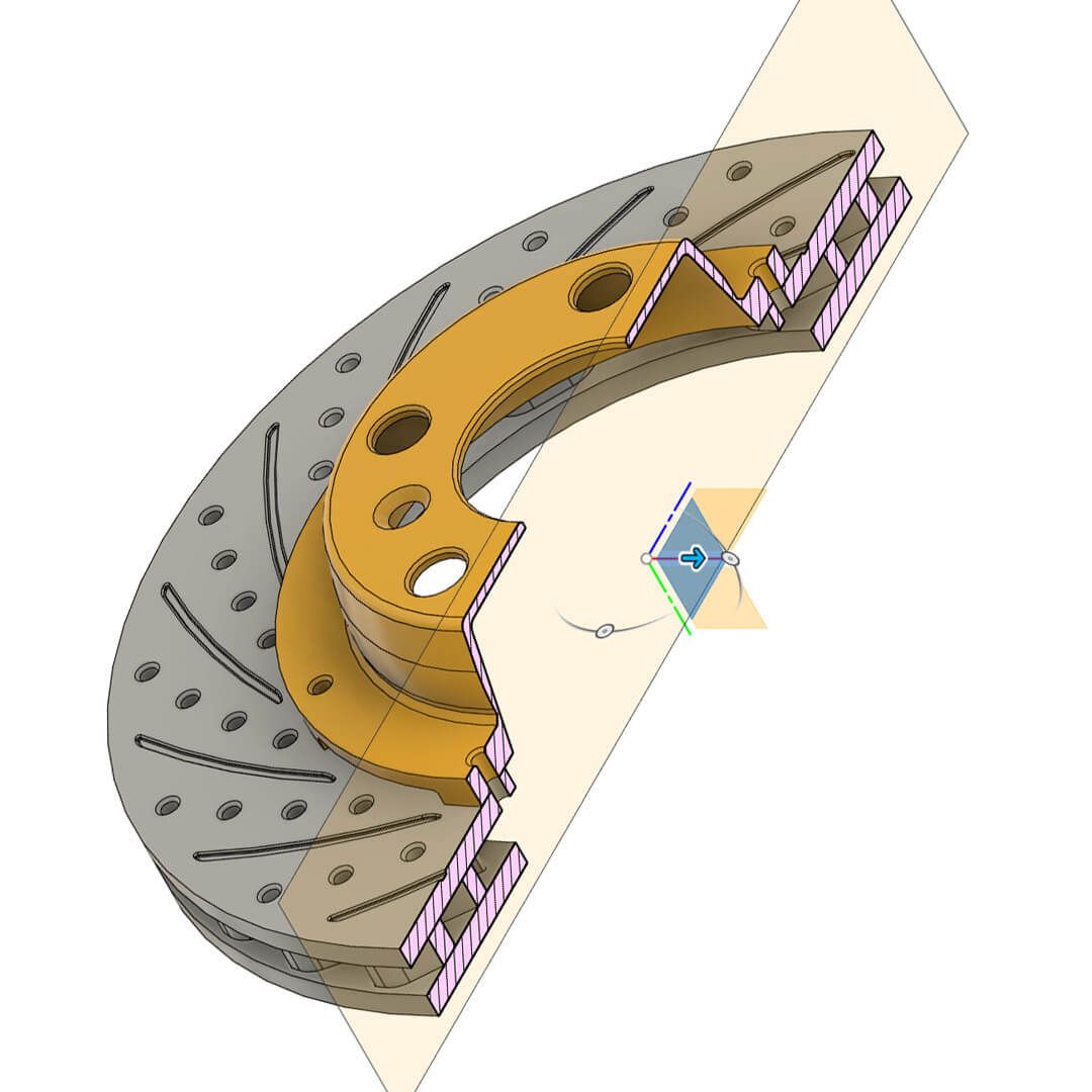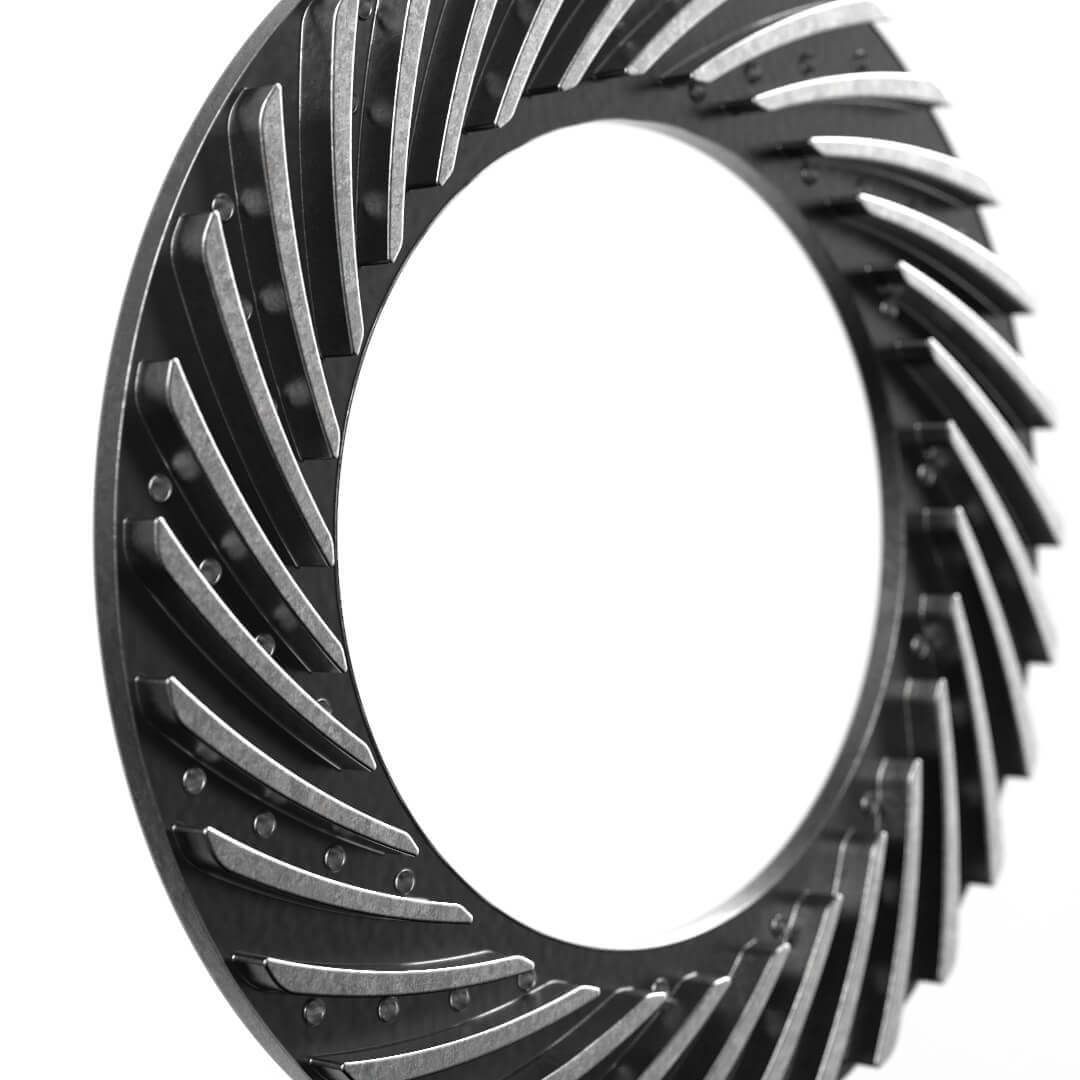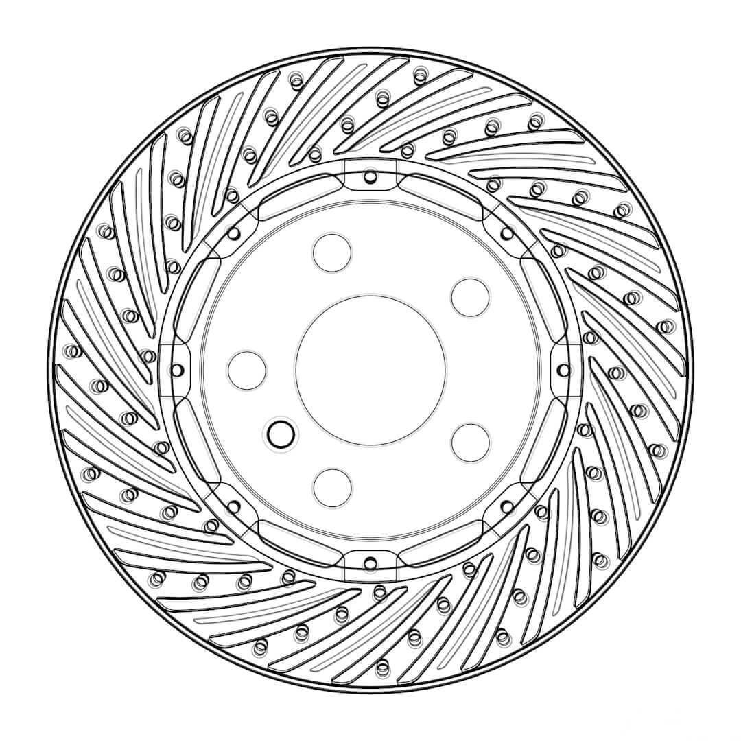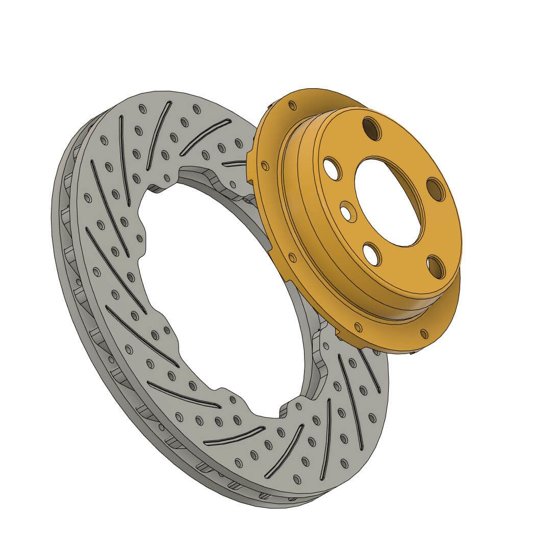 Estudo de modelagem CAD 3D, via Autodesk Fusion 360, de um disco de freio ventilado para automóveis. Renderização via Keyshot 11.