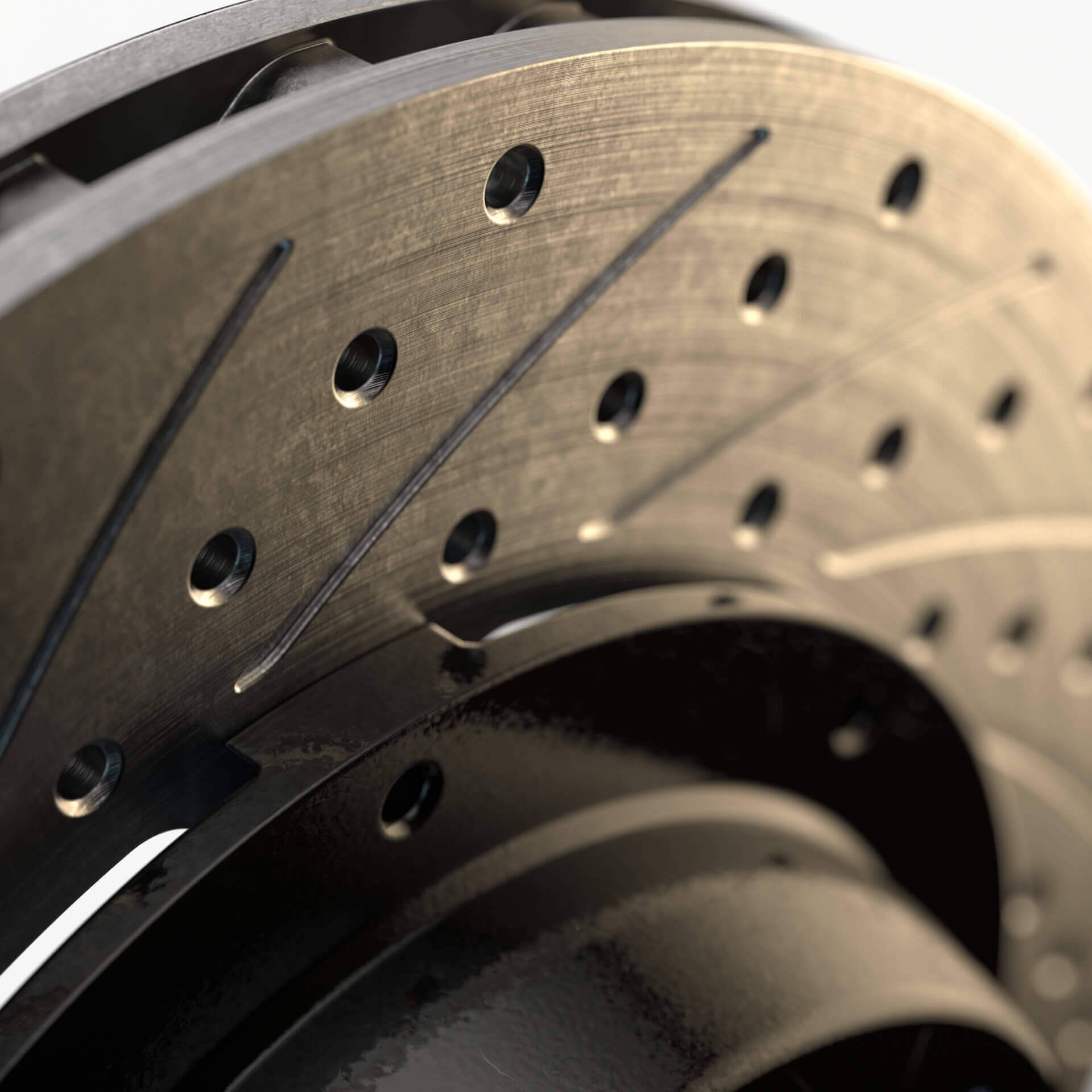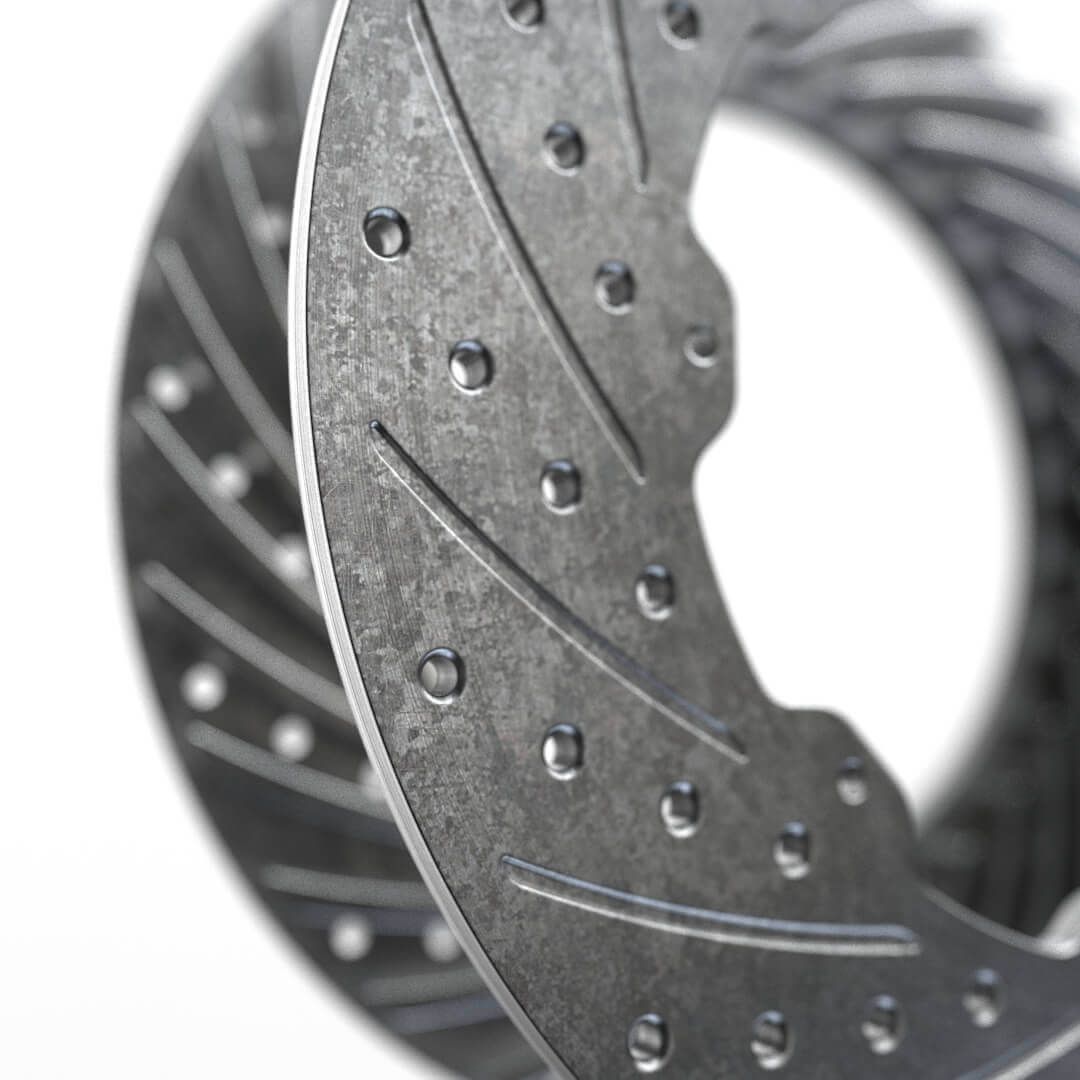 3D CAD modeling study, via Autodesk Fusion 360, of a ventilated brake disc for automobiles. Rendering via Keyshot 11.