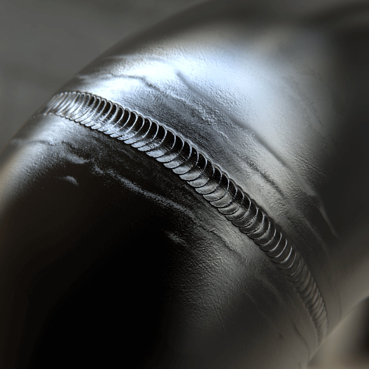Material application study simulating a metal weld bead. Normal maps, bump maps, textures, and roughness were used to achieve the final result.